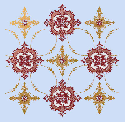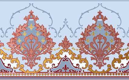 sidewall wallpaper were adapted and used in the design. The number of colors in the design