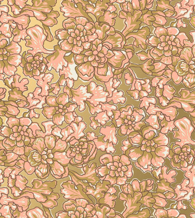 and frieze is printed on a gold foil paper which peeks around petals to glitter in