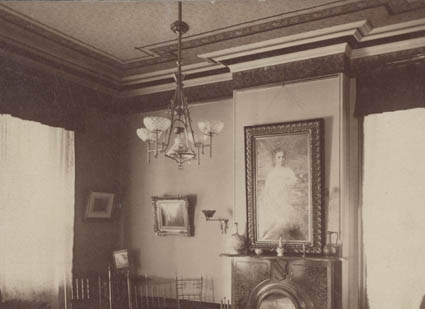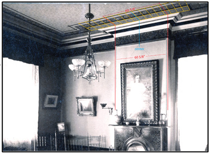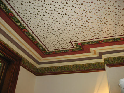 As was the style in the late 19th century, the ceiling treatment in the room was quite elaborate
