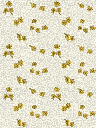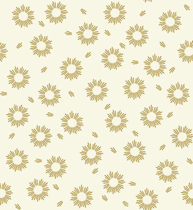 both a field paper of gold metallic sunbursts and a floral border accenting the outer edges