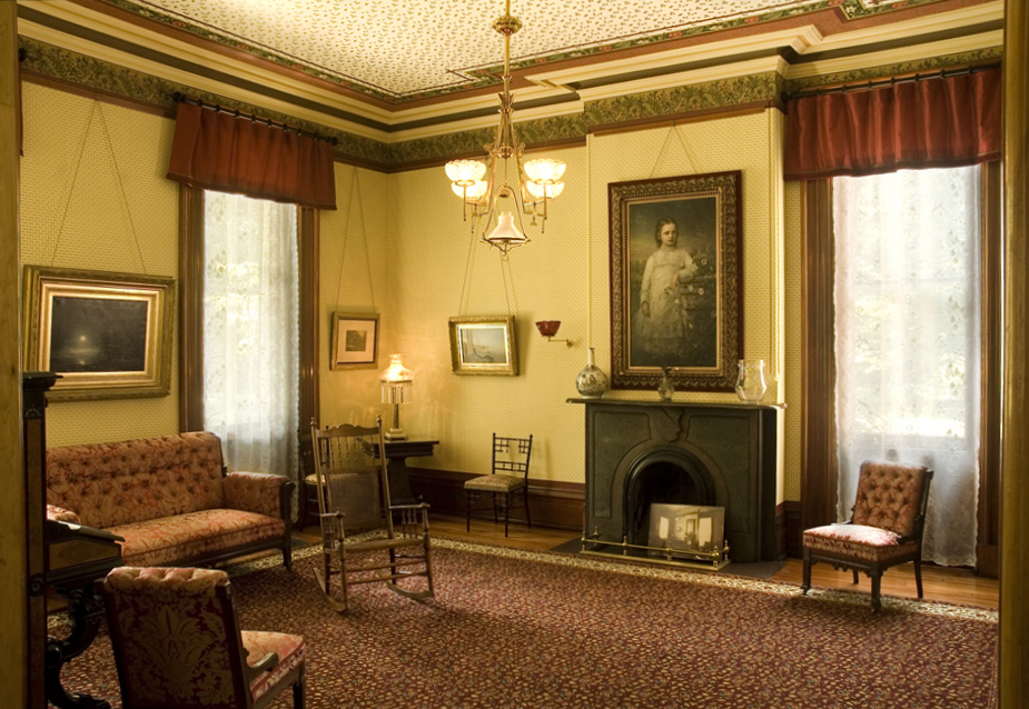 The Red Parlor was so described not for the wallpaper color but for the upholstery, draperies